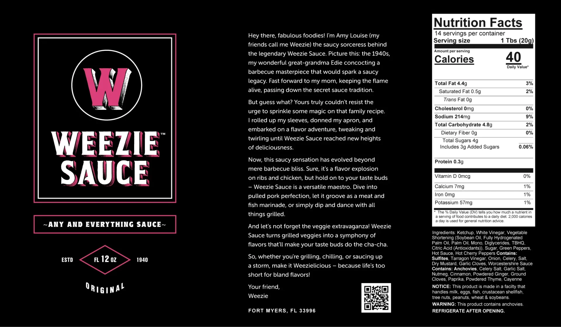 Whether you order online, visit us in person, or pick up, we’re here to ensure you get your hands on this culinary gem. Thank you for your interest and support. Pour, enjoy, and share the love with Weezie Sauce!